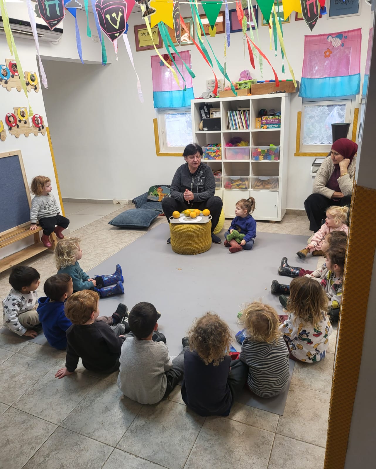 במהלך החודש עסקנו בנושא פירות הדר. הילדים הכירו סוגים שונים של פירות הדר דרך מגע, ריח וטעימה. שוחחנו על הצבעים, הטעמים והיתרונות הבריאותיים של פירות ההדר. קיימנו פעילויות יצירה בהשראת פירות הדר. שרנו שירים ולמדנו מילים חדשות הקשורות לנושא.